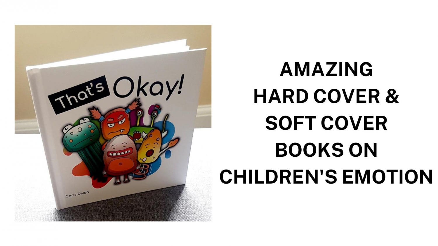 We are That's Okay, an amazing initiative for the welfare of children. With our help, you can help your children know their emotions even better. Being a Children's mental health book author & Illustrator, we have produced a range of amazing Books & eBooks describing children's emotions in a really amazing way through colourful creatures.Through our illustrations of different creatures, your children can easily connect with it and realise what emotions they are going through. The goal is to help children understand that having emotions are okay, even if it's to be angry or sad. It also provides as a communication tool for parents, teachers and others who work with children.Children might find it very difficult to understand what they are feeling or why they are feeling in a particular manner. They might even get scared of their feelings that can affect their health in physical & Mental sense.Our wonderful books will help you and your children amazingly. How? You will be able to make them understand their feelings better with the help of our creative books and your children will learn better about their feelings through beautiful & Colourful creatures or cartoon illustrations that we have created specially for them.Our Book will benefit in number of ways-- YOUR CHILDREN WILL KNOW ABOUT THEIR FEELINGS BETTER.- IT WILL BE EASY FOR YOU TO TALK ABOUT EMOTIONS & FEELINGS.- THEY WILL BE MORE OPEN & COMMUNICATE BETTER IN FUTURE.- YOUR CHILDREN WILL BE MORE CONFIDENT ABOUT THEIR FEELINGS.Let's help Children today with their emotions & feelings with our wonderful Books available in the form of Hard cover, Soft cover Books as well as eBooks.